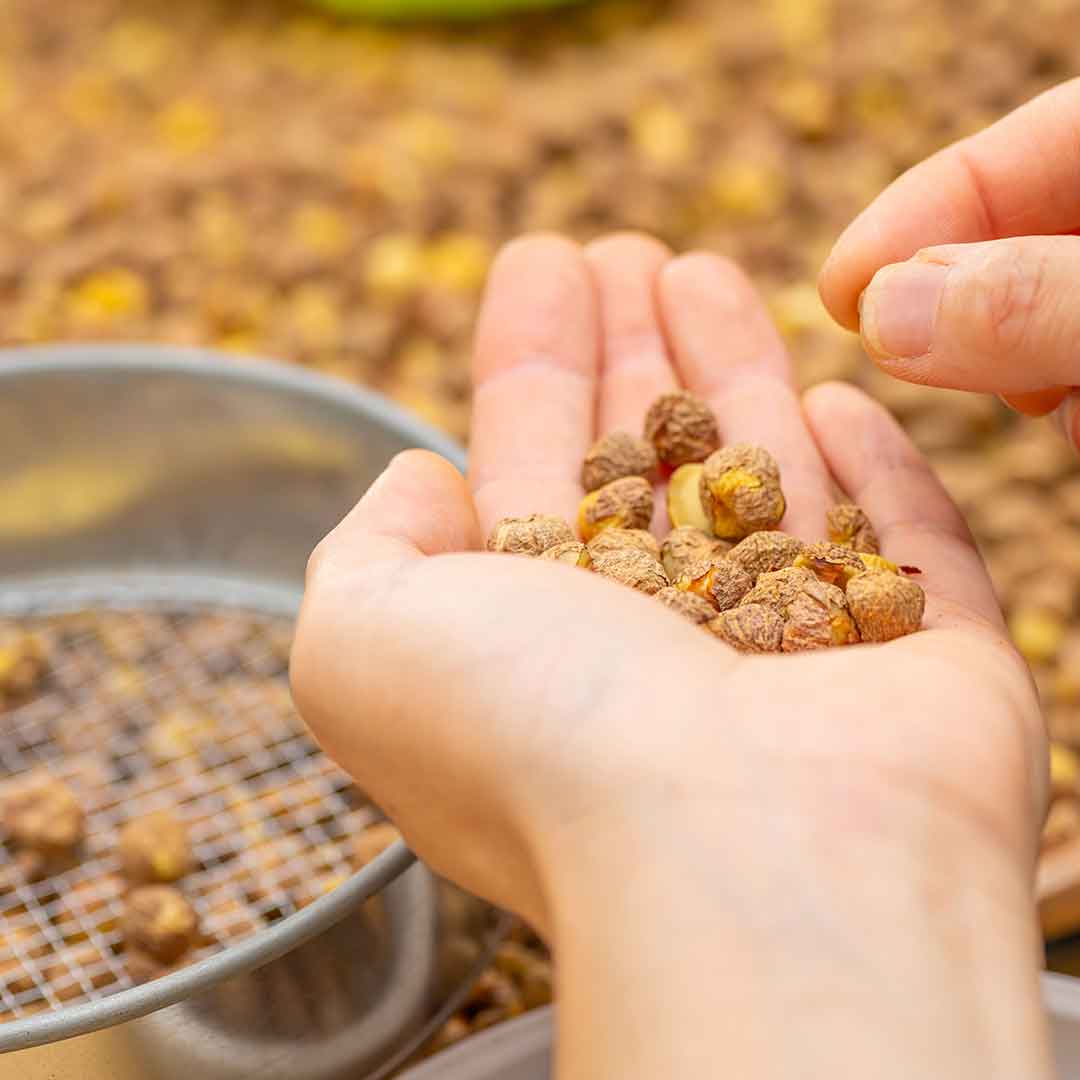 さらに茶の実の選別福祉施設に依頼し、1つ1つ手作業にて行っていただいております。
