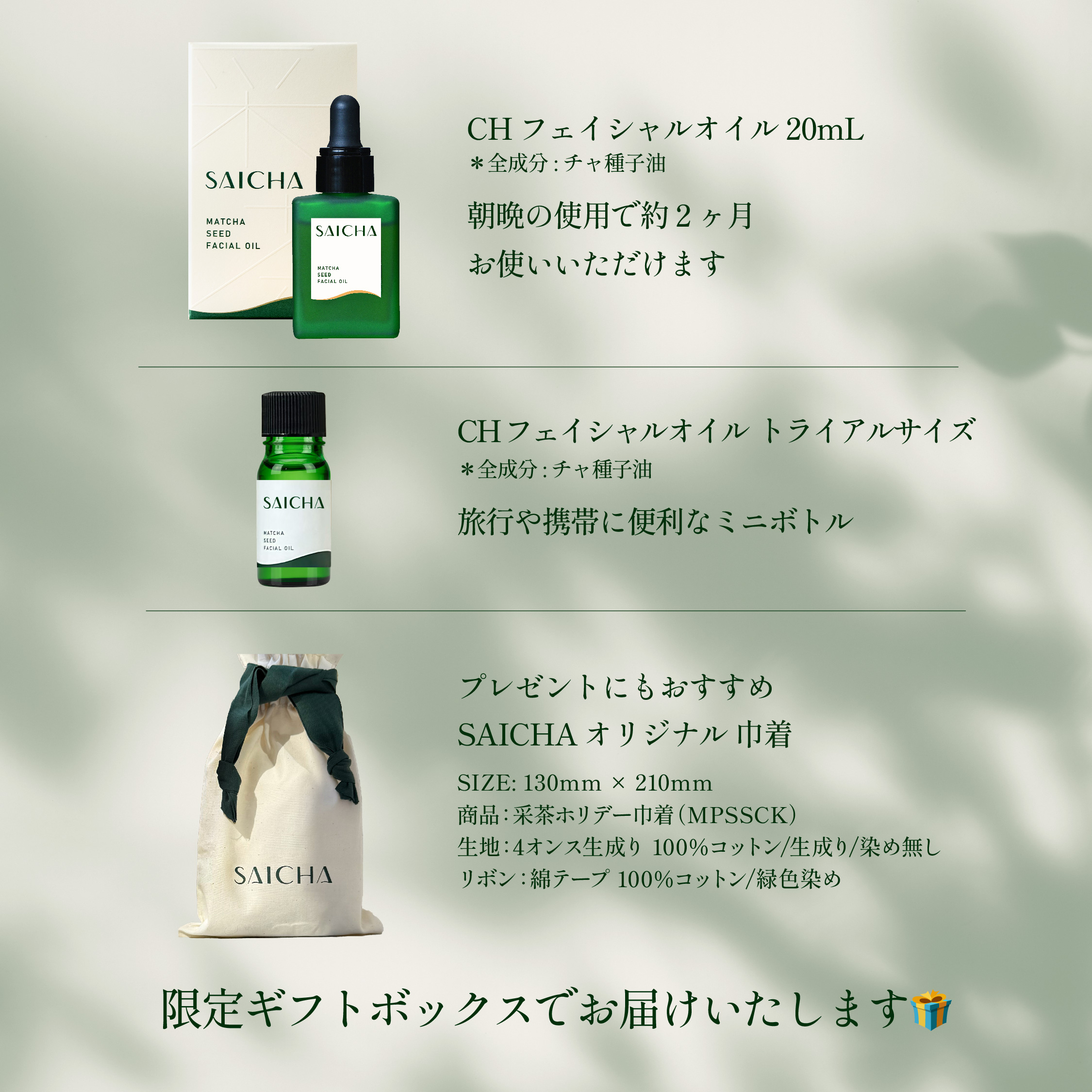 茶の実オイル*の豊かな恵みで、肌と心に深い安らぎと潤いを贈る特別なギフトボックスです。